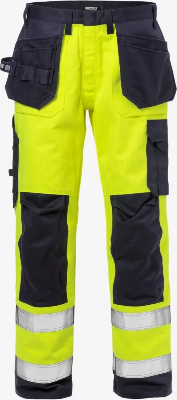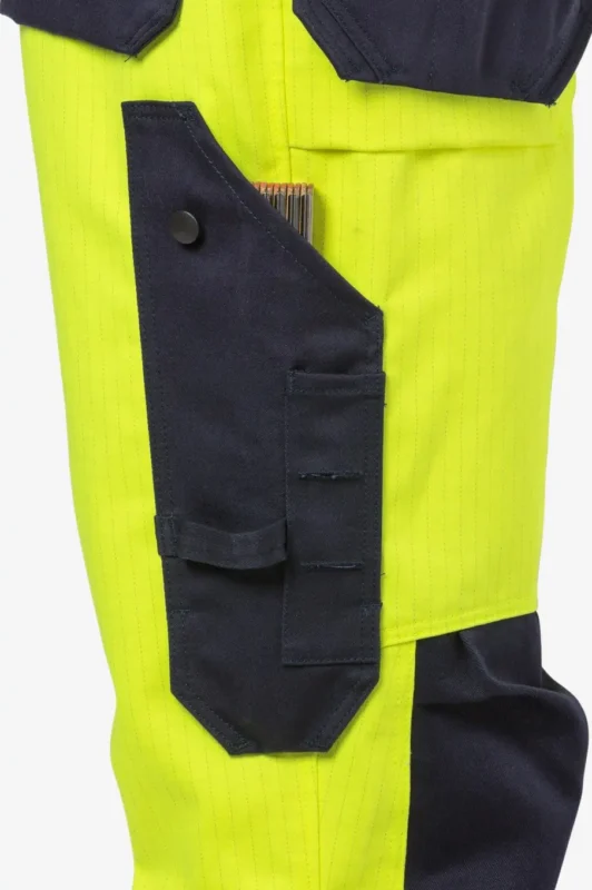 Sertifioidut multinorm-housut riipputaskuilla. Fristads 2584 FLAM tarjoaa palosuojan, valokaarisuojauksen ja luokan 2 näkyvyyden samassa paketissa. Kestävät riipputaskut ja ergonominen istuvuus tekevät näistä täydelliset housut rakentamisen ja teollisuuden ammattilaisille. Tilaa yrityksesi logolla painettuna – kysy tarjous WhatsAppilla!
